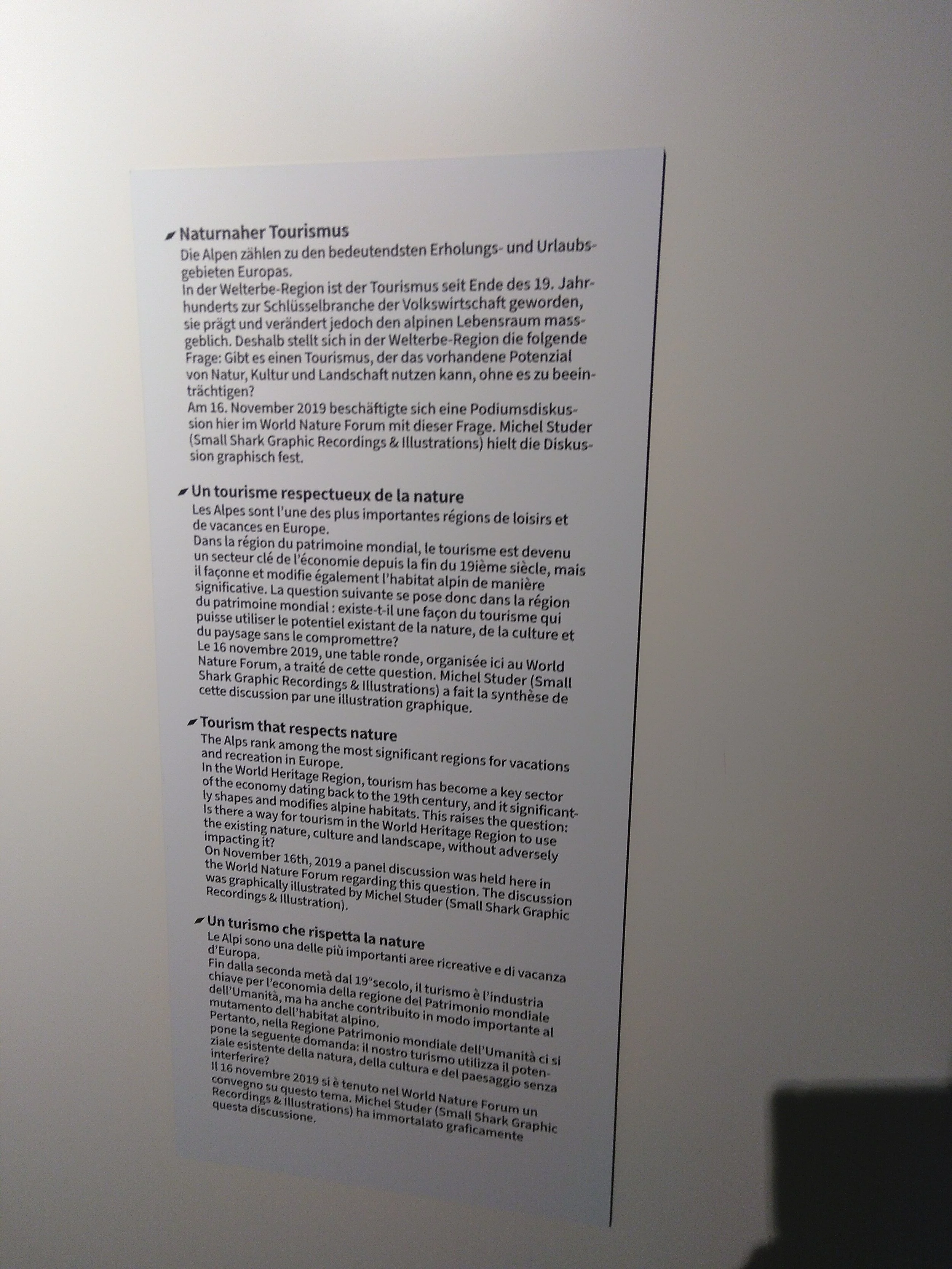 Dennoch, der Beginn von Small Shark war äusserst produktiv und hat mich bis in die Berge des Wallis geführt. Im World Nature Forum in Naters durfte ich einen Workshop zum Thema “Naturnaher Tourismus” besuchen und dazu ein Graphic Recording erstellen.